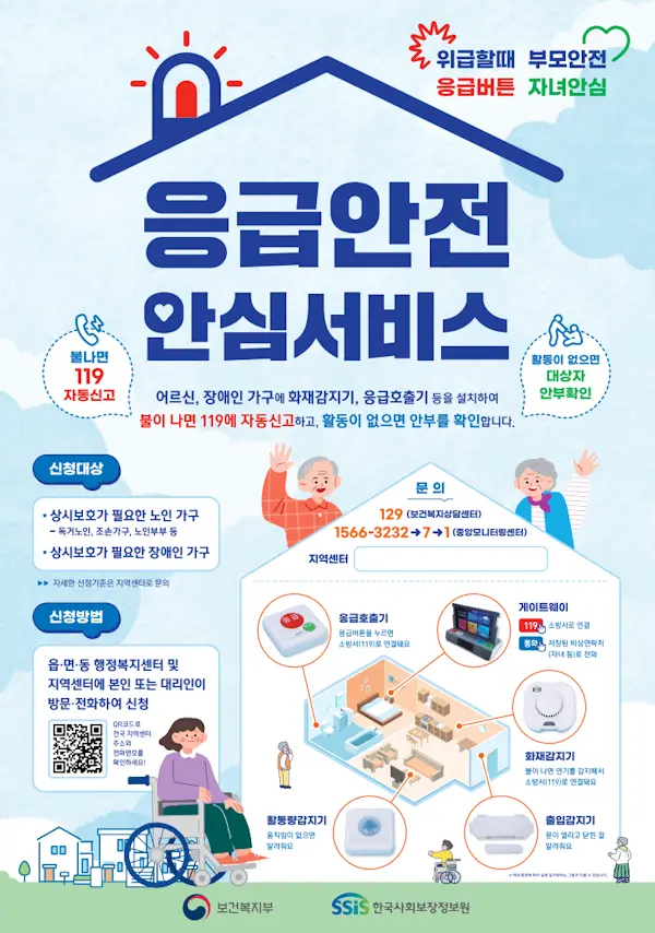 노년층을 위한 응급안전안심서비스는 생명을 지켜주는 매우 중요한 제도입니다. 고혈압이나 당뇨로 인한 실신, 쇼크, 갑작스러운 쓰러짐 등의 응급상황은 단독으로 거주하는 어르신에게는 매우 위험합니다. 이를 대비해 정부는 일정 기준에 해당하는 어르신 댁에 화재감지기와 응급호출기를 설치해 줍니다.