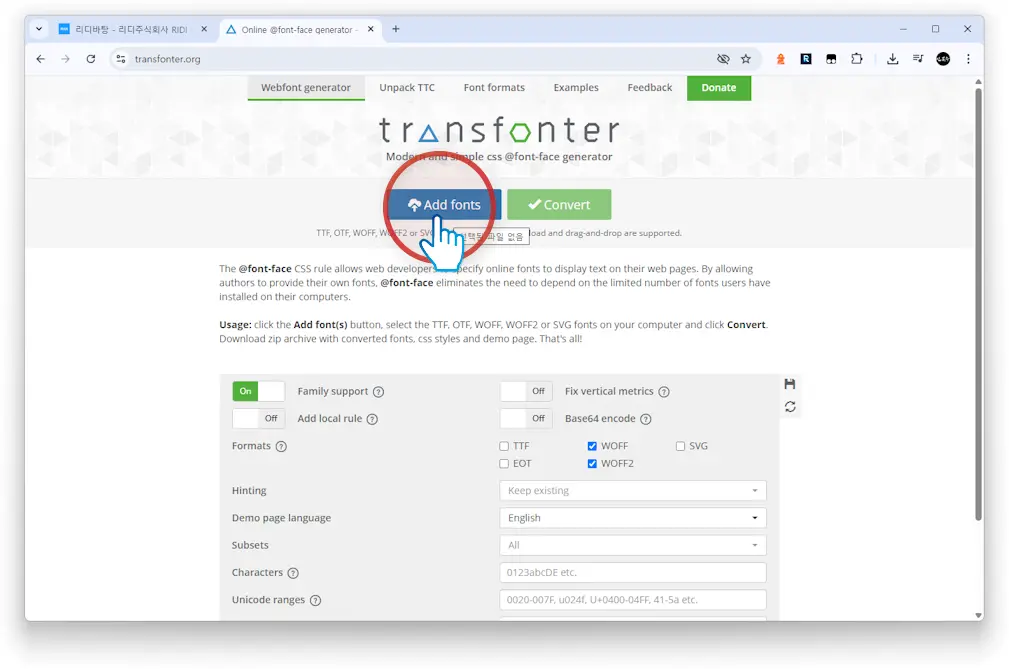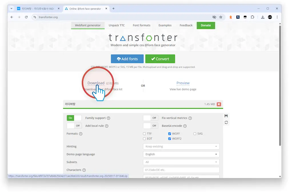 폰트파일을 추가했으면 옆에 있는 Convert를 클릭합니다.