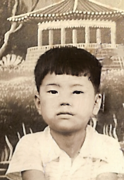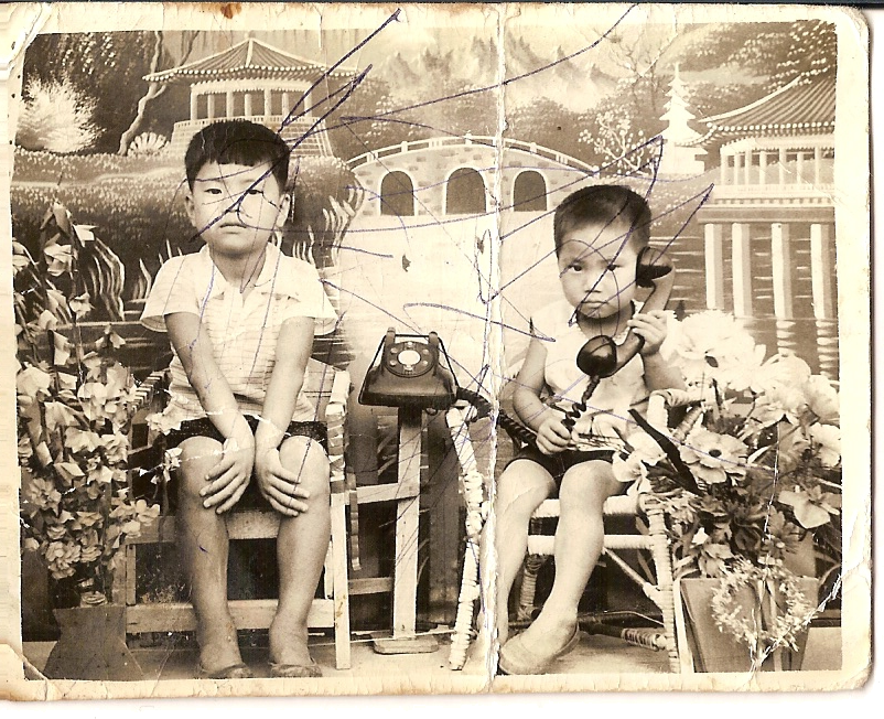 오래전에 스캔해 놓은 사진 ❸이라 이미지의 크기도 작아서 도저히 복원할 엄두가 나지 않았지만 그나마 포토샵에서 겨우 볼펜 자국을 지우고 찢어진 곳을 수리해서 아래 오른쪽 사진❹처럼 만들어 놓았습니다. 이 상태에서 Uniconverter를 사용하여 보정한 결과가 위에 있는 보정 후 사진❷입니다.