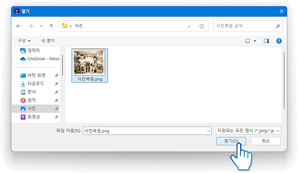 | ✔ 열기 창이 나타나면 복원할 사진을 선택하여 "열기" 버튼을 클릭합니다. |