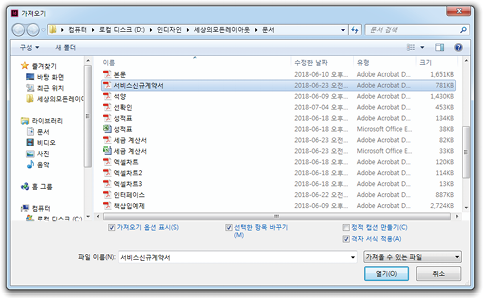 [파일] > [가져오기]를 실행하면 가져오기 대화 상자가 나타납니다. 하단에 [가져오기 옵션 표시]에 체크 표시하여 <확인>을 클릭하면 파일이 열리기 전에 [가져오기 옵션 창]이 먼저 열려 옵션을 지정할 수 있습니다.