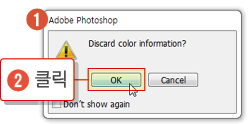 2. ❶ [색상 정보]를 버리겠냐는 [경고 창]이 나오면 ❷ <OK> 버튼을 클릭합니다.
