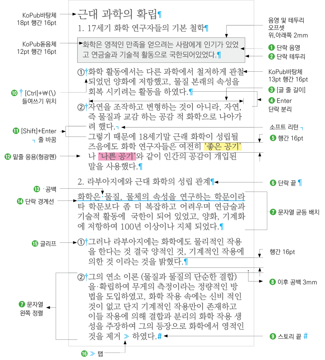 ❹ Enter : 단락을 분리하여 끝맺음 합니다.