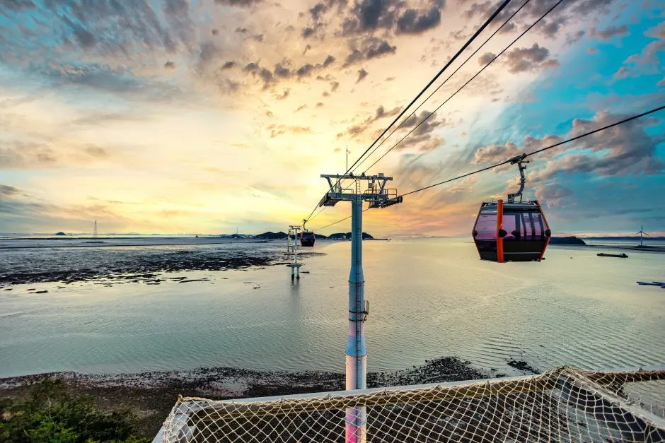 운행 거리 : 약 2.12km 소요 시간 : 약 10분 해발 고도 : 약 60m 경기도 화성의 제부도 해상 케이블카는 서해의 해넘이와 갯벌, 누에섬 풍력발전기 등을 한눈에 감상할 수 있습니다. 제부도는 밀물과 썰물 시간에 따라 바닷길이 열리는 신비로운 섬으로도 유명한데 케이블카를 통해 색다른 각도에서 감상하면 더욱 특별한 경험이 됩니다. 가족과 함께하기 좋은 안전한 케이블카로도 추천됩니다. |