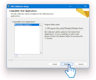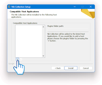 한국어로 설치를 진행하면 포토샵의 위치를 선택할 수 있는 "+" 아이콘이 표시되지 않습니다.