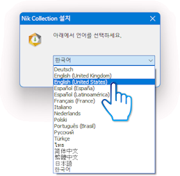 ◾프로그램 설치가 시작되면 한국어를 클릭하여 드롭다운 메뉴에서 "English (United States)"를 선택합니다.