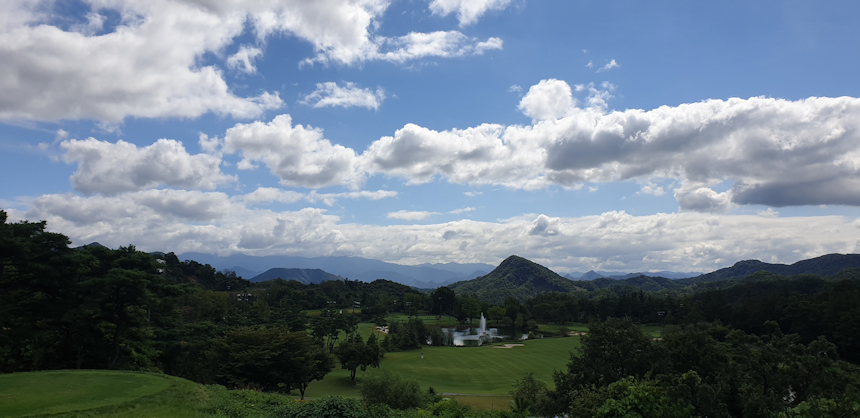 뿌연 하늘이 걷혀 맑고 푸른 색을 드러낸 모습